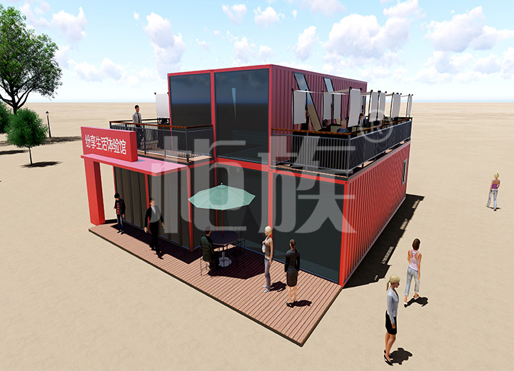 The colorful appearance is eye-catching, and the container's optional combination function can extend the usable area of the space as required. The first floor is for display and the second balcony is for rest and entertainment.